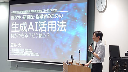 医学部教育FDを開催いたしました。「医学生・研修医・指導者のための『生成AI 活用法』~何ができる?どう使う?~」をテーマに千葉大学大学院医学研究院医学教育学笠井大先生にご講演いただきました。